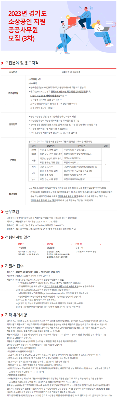2023년 '경기도 소상공인 지원 공공사무원' 모집 (3차)